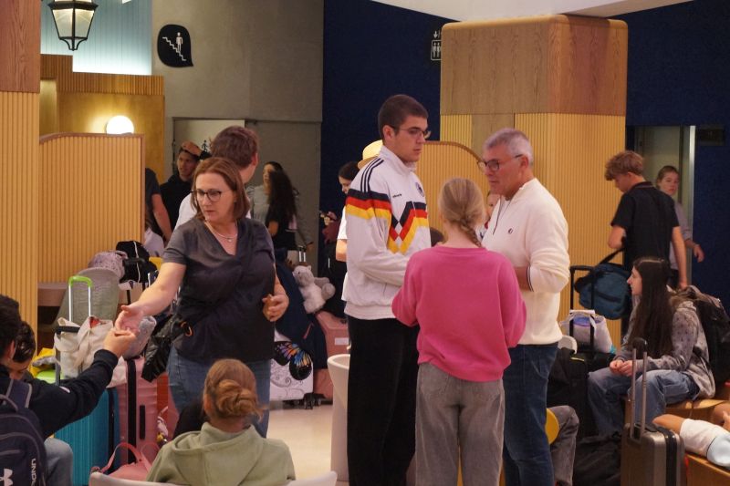 Viel zu schnell kam der Tag der Abreise - in der Hotelhalle warten wir auf das Ergebnis der Zimmerkontrolle - Leider hatten wir auf der Autobahn einen Unfall, der uns zum Anhalten gezwungen hat; aber Gottseidank wurde niemand verletzt und wir konnten die Reise fortsetzen - als Dank für das tolle Verhalten beim Unfall spendierte Pfarrer Burkhardt für alle ein Eis - müde, aber erfüllt von unvergesslichen Erlebnissen kehrten wir nach Hause zurück.