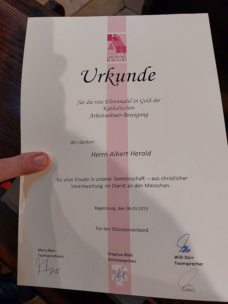 Im Rahmen der Wolfgangswoche 2023 wurde Herrn Albert Herold von Generalvikar Dr. Roland Batz die rote Ehrennadel in Gold mit Urkunde überreicht! Herzlichen Glückwunsch, Herr Herold, zu dieser Auszeichnung!