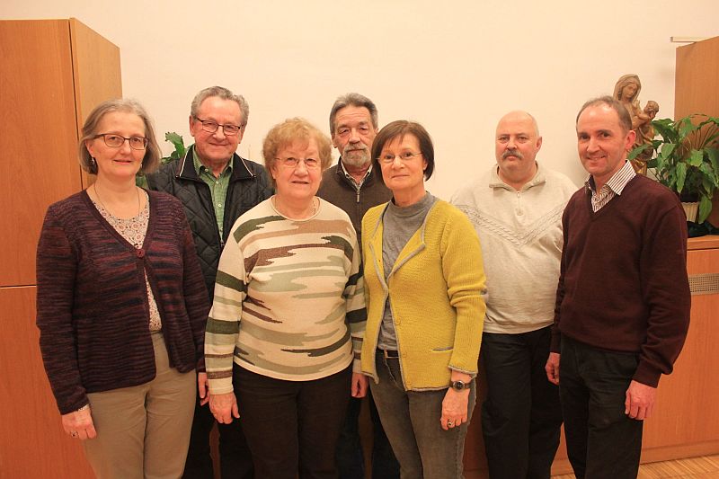 (v.l.n.r.: Hildegard Götz - 1. Vors.; Albert Herold - Schriftführer; Hermine Herold - Kassier; Josef Poitsch - stv. Vors.; Gerlinde Poitsch - Kassenprüfer; Stefan Reimann - Beisitzer; Bernhard Rauscher - Fahnenträger; nicht im Bild Gerlinde Grundler - Kassenprüfer und Stadtpfarrer Josef Eichinger - Präses)