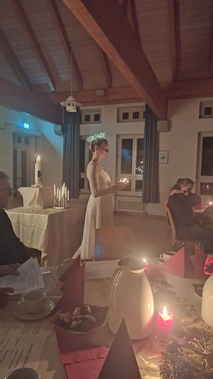 Zahlreiche Besucher füllten den Pfarrsaal in Sallern zur Adventfeier der Kolpingfamilie mit dem Thema "Luzia" - es konnten auch zwei Mitglieder für 60 Jahre Mitgliedschaft geehrt werden