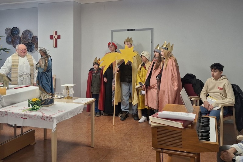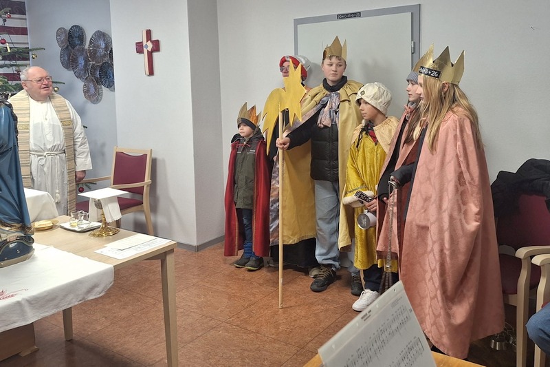 Beim Gottesdienst mit Prälat Hubbauer besuchen die Sternsinger das AWO Seniorenheim und bringen den Segen zu den Bewohnern